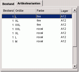 Artikelvarianten sind gleiche Artikel mit unterschiedlicher Ausprägung. Unter-schiedliche Ausprägungen sind zum Beispiel unterschiedliche Größen und/oder unterschiedliche Farben. Ein T-Shirt wird unter der gleichen Artikelnummer mit jeweils unter-schiedlicher Größe und/oder unter-schiedlicher Farbe separat in der Artikeldatenbank von CASy gespeichert.
